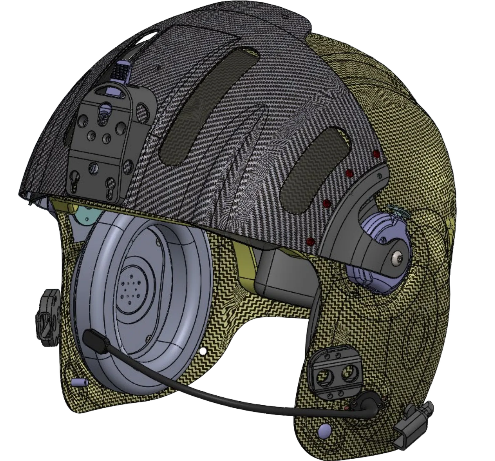 Worlds lightest helmet shell manufactured with patented fiber lamination and resin system that outperformed all other shells for impact and puncture resistance, at the same time reduced weight.